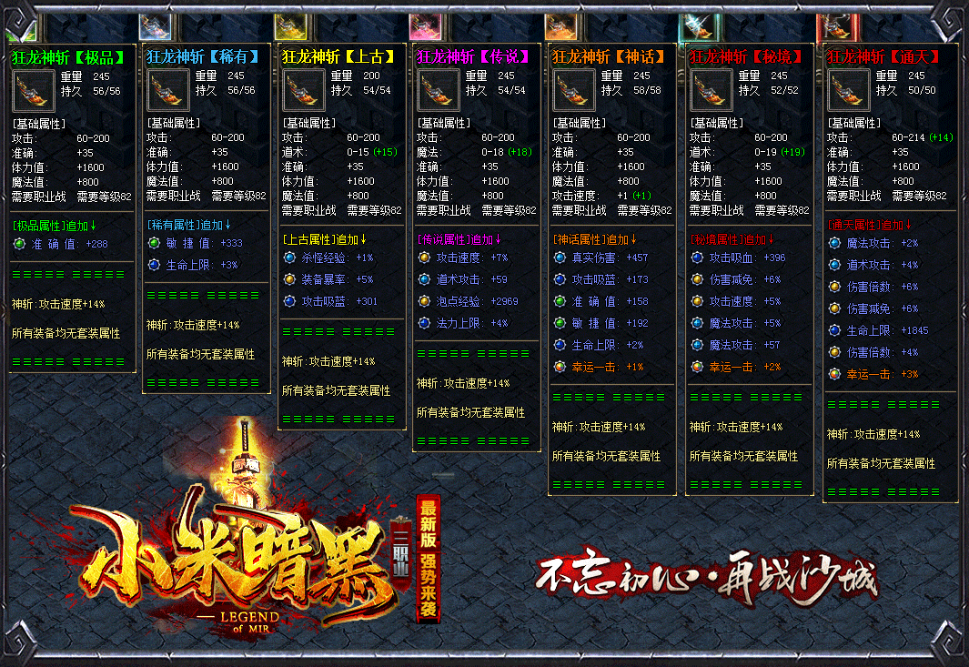 所有装备物品均由怪物直接掉落,BOSS爆终极装备,肯花时间啥都有!